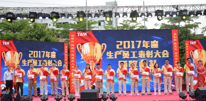 On the afternoon of April 21st, the 2017 Xinqiao Production Workers Commendation Meeting and T&W People Large-scale Art Performance was grandly held. 130 outstanding employees, 16 T&W craftsmen, 6 Touching T&W people and 12 advanced teams and groups were commended on site. At the same time, "three chapters" art performance was held . Chairman Wang Dawei delivered an important speech. The company leaders including Gong Peisheng, Long Xiaojing, Qi Jianzhong, Chen Kai, Zhao Xingwang, Zeng Baoshan, Wen Wanxing and Nie Zhenya attended the conference.
