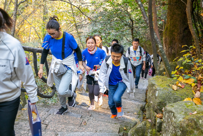Climb Daming Mountain, be a true man, strive and coordinate and aspire to reach the top. Appreciate five unique scenes, temper talents, stay true to original aspirations and march forward by following the tide. In order to further gather strength, unify thoughts, carry forward the fighting spirit of Tongwei employees and promote new employees of Tongwei to gain a profound understanding of the enterprise culture, on the morning of November 9th, 226 new employees of East China Zone started from Shanghai or Taicang for Daming Mountain in Lin’an to attend the ninth Tongwei new employees’ mountaineering activity.
