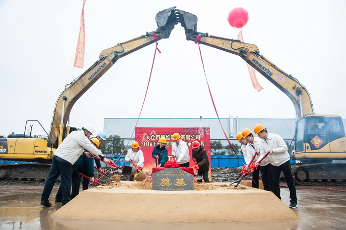 On the morning of February 22, TaicangNo. 301Cadre Dormitorycommencement ceremony was grandly held, Chairman Wang Dawei of the company, Qi Jianzhong that is the assistant to General Manager, Deputy Manager Wang Zhibo, Deputy Manager Yang Wenliang of Taicang T&W and Infrastructure Project Investment Director XuXin and other leaders arrived at the scene to attend the commencement ceremony. At 10:10 a.m., Project Manager Du Jianminof the project partner Shanghai BYETCannounced the formal commencement of No. 301Cadre Dormitory. Leaders of the company and developer representatives waved the shovels to lay the foundation for the project in the sound of firecrackers.