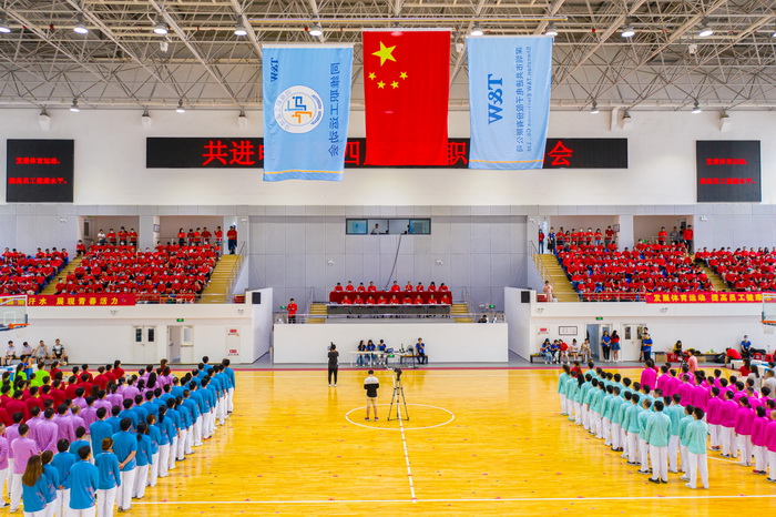 Lan, Gong Pusheng, Wei Yiming, Tang Xiaolin, Long Xiaojing and He Yimeng, and leaders from the seven subsidiaries and each platform all attended the opening ceremony. The bright five-star red flag, T&W company flag and flag of the games were raised in the air of the main venue of the sports center of Taicang Industrial Park. The delegations entered in orderly arrays, and sang the national anthem together to greet the Fourth T&W Workers’ Games.