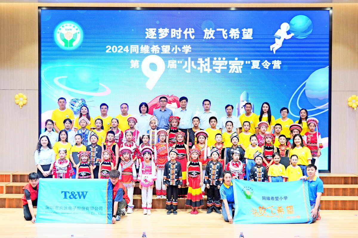 In the era of pursuing dreams, let's fly our hopes.On July 28th, the 9th "Little Scientists" Summer Camp of the 2024 Tongwei Hope Primary School, hosted by the Shenzhen Tongwei Love Public Welfare Foundation, came to a successful conclusion, marking the end of a wonderful seven-day scientific journey for 96 outstanding teachers and students from eight Tongwei Hope Primary Schools in five provinces.