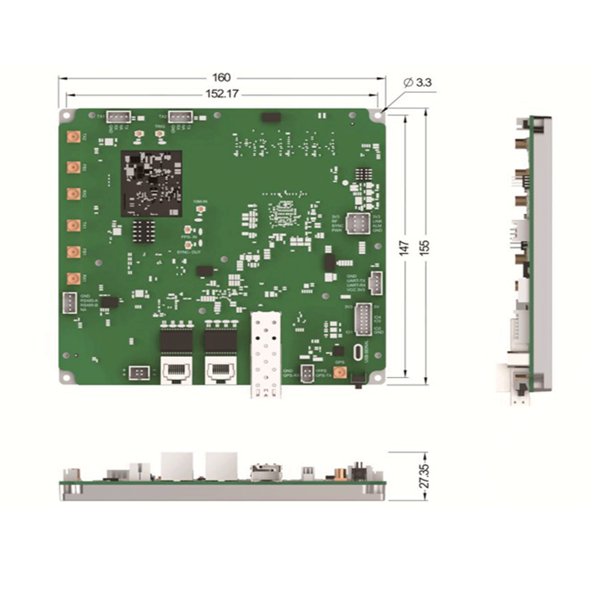 The 5G digital baseband board is a super-compact 5G base station board based on Sub 6G technology, with flexible expansion and configuration options. Its unique modular design and extensive expansion interfaces cater to high-power coverage scenarios. Users can choose different frequency bands and power levels for RF peripherals to meet the needs of public and private networks.