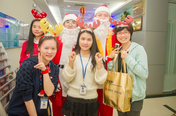 圣诞前夕,上海行政部也开始忙碌布置起来。从电梯口到前台,圣诞树、圣诞花、雪花、铃铛的装扮使整个办公室充满了圣诞的气息也为即将到来的新年增添了不少喜庆之色。12月29日,行政部将太仓带来的新年礼物送到了每位员工手上,当员工们收到礼物时,一时间整个公司充满了欢声笑语,一份惊喜,一份感动,收获的是满满的幸福。