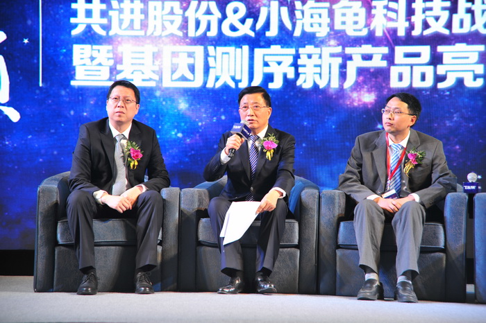 beat365首页股份和小海龟科技联合举办的战略合作签约仪式暨基因测序新产品亮相点燃了发布会的高潮。公司唐总、小海龟科技总经理胡潘根、第二军医大学副校长刘斌教授、中国医学科学院肿瘤医院首席放射物理专家胡逸民教授及上海生物信息技术研究中心党委书记王涤松教授共同揭开了半导体高通量基因测序仪神秘的面纱。据小海龟科技首席科学家吴东平介绍,双方共同推出的新产品半导体高通量基因测序仪,其核心原理是利用半导体芯片中高度集成的传感单元测量离子变化并转换为电信号读出,具有通量高、速度快、精度高的优点。另外,该产品是国内首款自主研发的半导体基因测序仪,拥有全自主知识产权,技术先进。更吸引市场的是,该仪器价格和测序费用都将大大低于目前的市场价格,将有力推动基因测序技术的普遍使用。