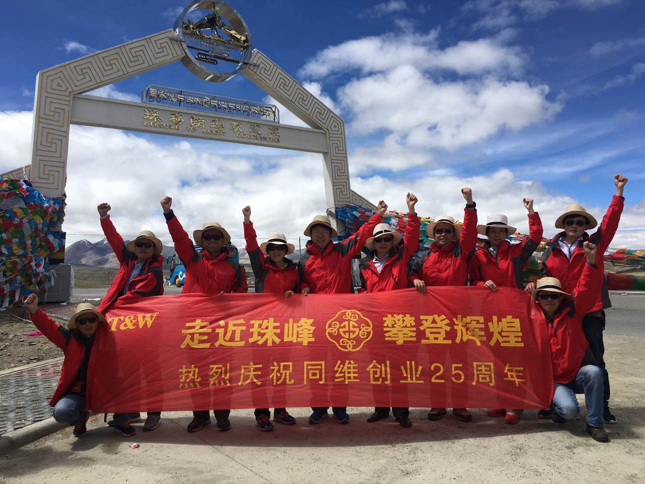 湛蓝的高空,洁白的雪峰,看云卷云舒、峰峦如涌。7 月2 日,同维创业25 年庆典系列活动——第三届高管西藏拓展活动如期举行。7 月7日下午6 点,高管团队成功登上5200 米的珠峰大