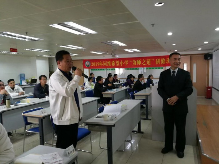 2019年为师之道研修班培训对象是同维希望小学校长、副校长、教导主任等学校骨干,共计24名学员。本届为师之道研修班将秉承同维希望小学持续发展的理念,以管理为中心,树立管理思维,提高管理能力,构建独具特色的同学希望小学管理体系,从而提升学校教学质量。公司副总经理、同维爱心公益基金会理事长龙晓晶展望2019年为师之道研修班学习规划,阐释管理主题。公司董事长汪大维为2017年度优秀学校颁奖并作重要讲话。汪总说,从支教老师反馈的信息看,改善学校管理,提升教学质量,非常必要。本届为师之道主题是管理,可以说管理无处不在。同维希望小学限于条件,存在许多短板,其中主要差别就是管理。老师本来就应该具备管理能力,甚至课堂提问都处处体现管理。同维希望小学有自身特点,要时时运用管理的思维,如图表、数据等管理手段,对学校后勤、老师、学生甚至家长等进行全面有效管理,从而逐步构建同维希望小学独具特色的管理体系。