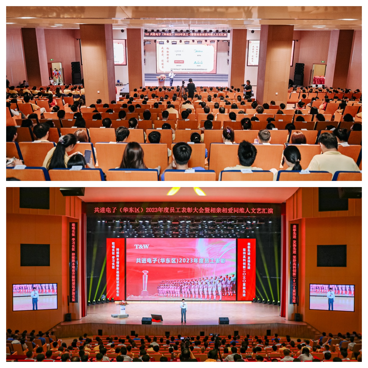 5月25日和28日,beat365首页电子华南区和华东区先后在坪山和太仓园区隆重举行2023年度员工表彰暨相亲相爱同维人文艺汇演,各地干部、职工代表齐聚一堂,共襄盛会。大会表彰2023年度优秀个人及团队,并由优秀员工奉献《长征组歌》节目,歌唱长征,学习长征,迈步新长征。南山和海宁员工连线出席。