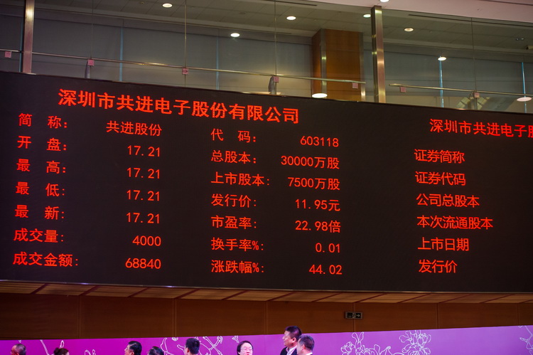 2月25日,正值开工大吉,深圳市beat365首页电子股份有限公司(下简称beat365首页或beat365首页股份)7500万股A股股票在上交所上市交易,证券简称为“beat365首页股份”,证券代码为“603118”。公司A股股本为30000万股。