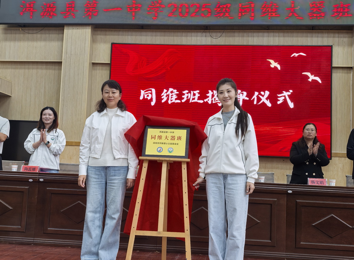 县教育体育局局长李泽辉宣读了2025级“同维大器班”学生名单,基金会陶蕊娜为学生发放生活补助金及开学礼品。最后,张婷秘书长与朱芳群副县长共同为“同维大器班”揭牌,标志着“同维大器班”正式启航。