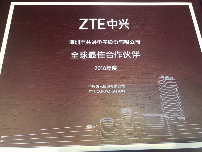公司荣获中兴通讯2018年度“全球最佳合作伙伴”奖