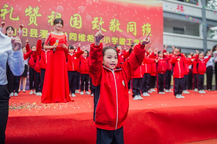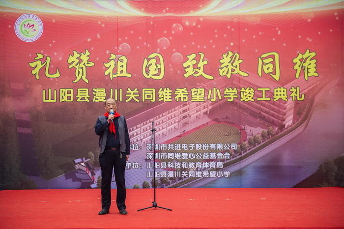随后,汪总、龙副总与商洛市、山阳县各级领导一同为学校揭牌。仪式结束后,同维爱心公益基金会还向学生们发放了爱心礼物,并举办了以“礼赞祖国,致敬同维”为主题的文艺表演。