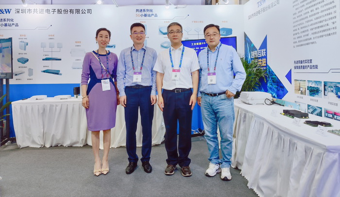 公司总经理胡祖敏与中国移动研究院副院长丁海煜在PT展上交流5G小基站合作